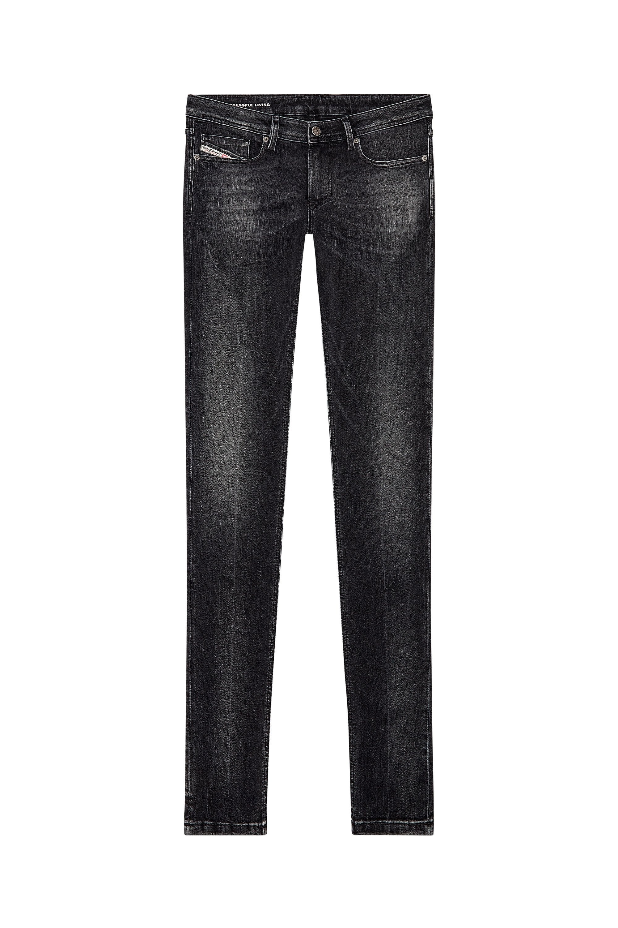 Model is wearing a size 31 and is 182 cm / 5'10'' Fits true to size, take your normal size. Skinny style with a low waist and regular-length, narrow leg from thigh to ankle, designed with a punk-rock attitude in mind. Made from stretch denim, this black wash is treated for a distinctive finish. Iconic and essential, it's part of Diesel's DNA washes.