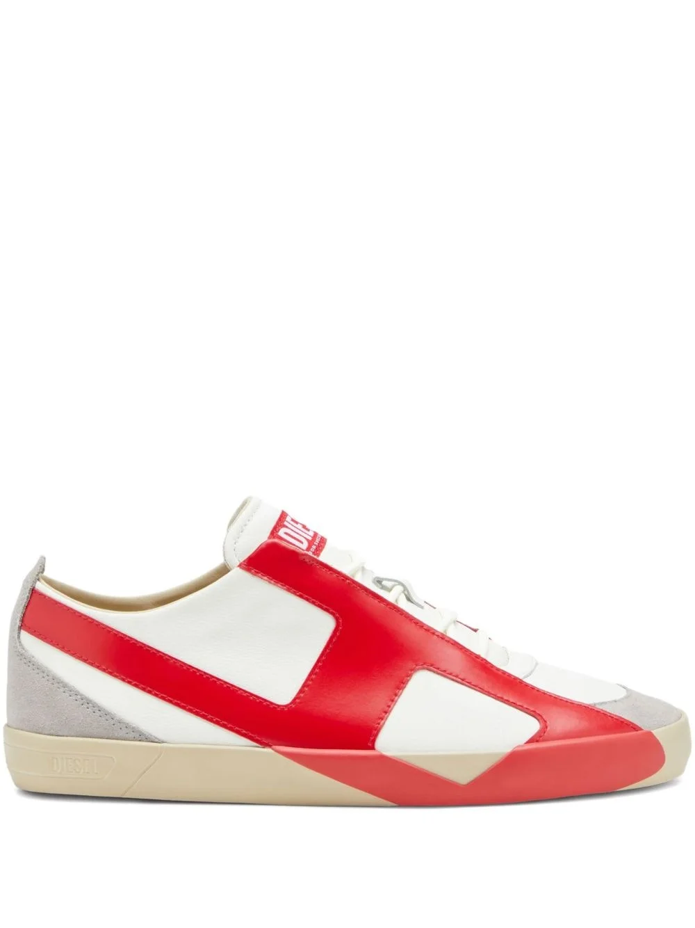 Slante leather sneakers Highlights - Red - Contrasting colour block - Front lace-up fastening - Flat rubber sole - Round toe Imported Composition Sole: Rubber 100% Lining: Calf Leather 100% Outer: Calf Leather 100%, Canvas 100%