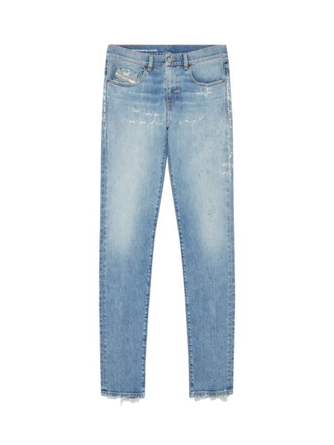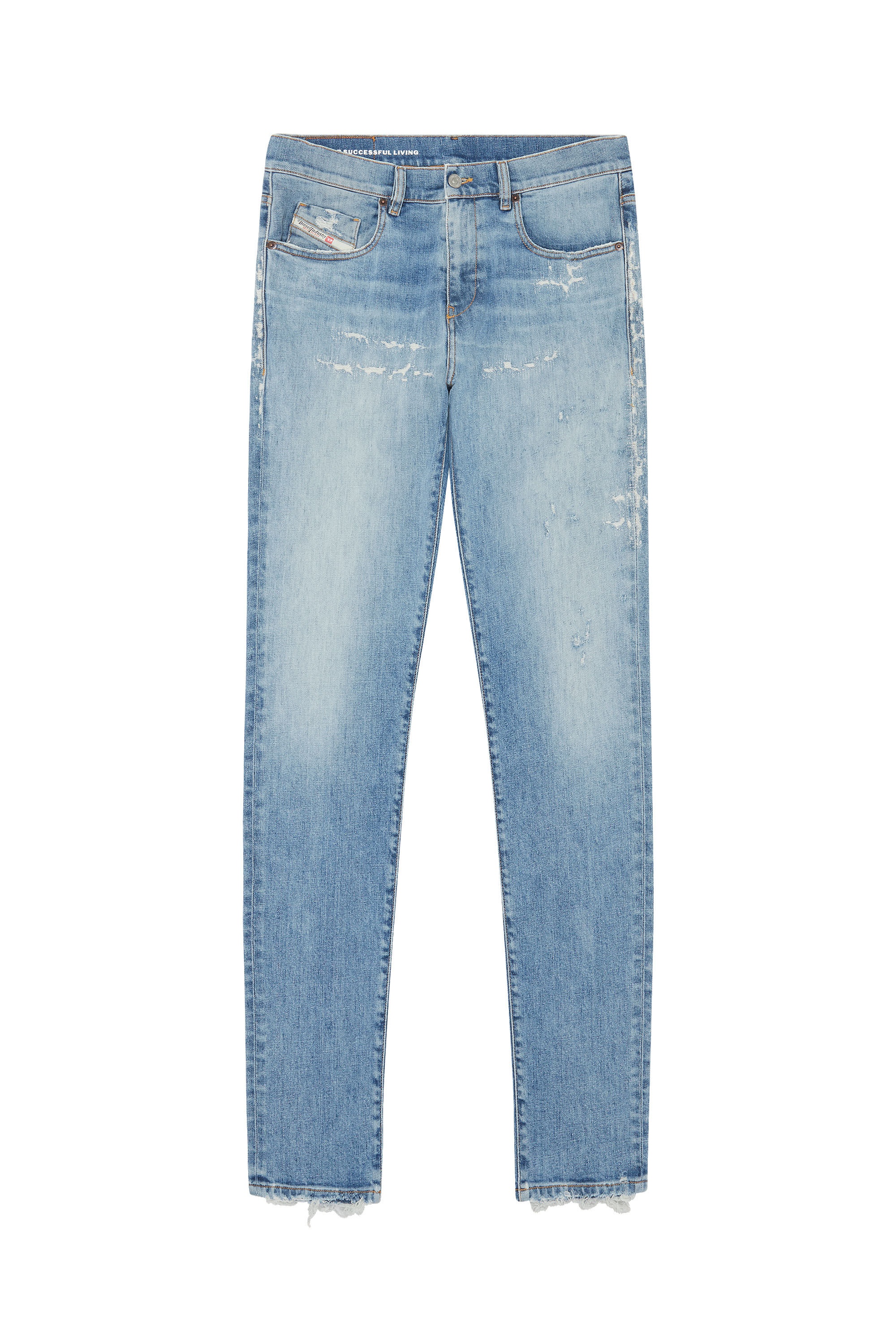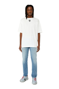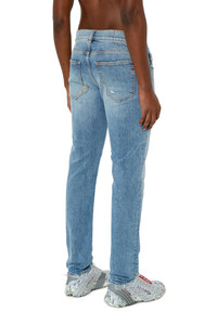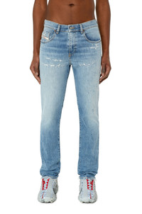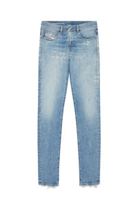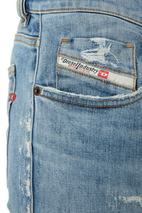 PRODUCT ID: A0355809E73 - 63%Cotton 34%Lyocell 2%Elastane-Spandex 1%Other Fibres - Slim - Slim - Regular waist - Treated - Stretch - Light blue - Zip fly Model is wearing a size 31 and is 182 cm / 5'10'' Fits true to size, take your normal size. Slim style with a clean construction and essential details. This versatile jean features a comfortable silhouette, finished with a zip fly. Made using recycled fibres, this fix denim is part of Diesel Rehab Denim, an innovative fabric created with a more circular approach. The light blue hue features abrasions and worn effects for a distinctive look.