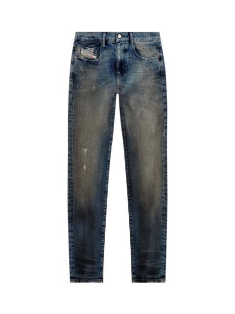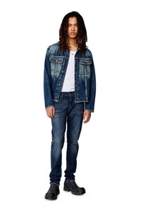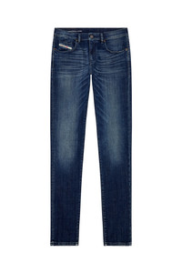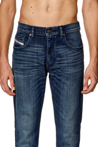 Product Description Slim style with a clean construction and essential details. This versatile jean features a comfortable silhouette, finished with a zip fly. Made from comfort denim with partially recycled cotton and a hint of stretch, this dark blue wash is treated with light whiskers where the fabric naturally bends with wear–a distinctive trait of Diesel's DNA denim. ID: A0355809H35 Size & Fit Model is tall 187 cm / 6' 1.5", the waist measures 73 cm / 28" Check the size chart to choose the correct size. Materials & Details Composition: 99%Cotton 1%Elastane-Spandex By buying cotton products from Diesel, you’re supporting responsible cotton production through "Better Cotton”. Fit: Slim Waist: Mid Leg: Slim Wash: Medium treated Fabric: Comfort Color: Dark blue Closure: Zip fly