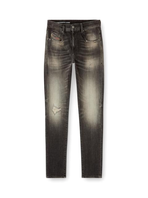 Product Description Slim fit with a medium waist and slim leg. Characterised by a comfortable construction and a clean, essential silhouette to create a minimal amount of bunching. Tapping Diesel's signature destroyed aesthetic, this grey comfort denim is defined by used-effect shading and hand-finished ripped and repaired detailing for a rugged touch. It's made using a percentage of recycled cotton. ID: A0355809N59 Size & Fit Model is wearing a size 32 and is 182 cm / 5'10'' Check the size chart to choose the correct size. Materials & Details Composition: 99%Cotton 1%Elastane-Spandex Fit: Slim Waist: Mid Wash: Destroyed Fabric: Comfort Closure: Zip fly