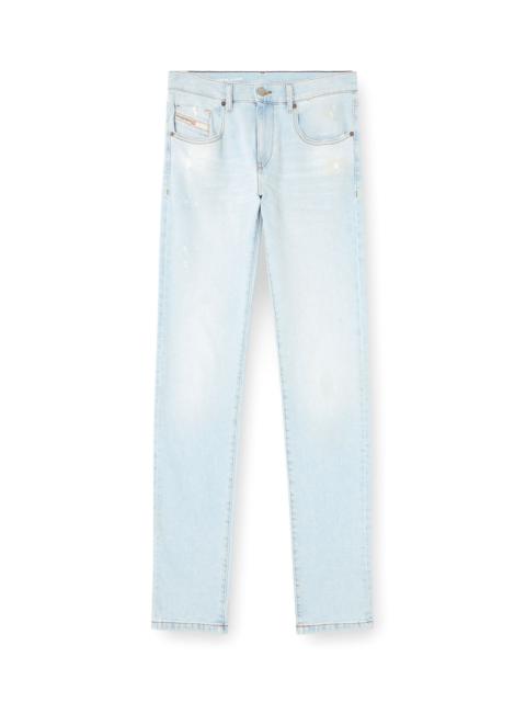 Product Description Slim fit with a medium waist and slim leg. Characterised by a comfortable construction and a clean, essential silhouette to create a minimal amount of bunching. Crafted from comfort denim with a percentage of organic cotton, it features a light blue wash which is part of Diesel's DNA essentials. The clean finish is slightly lighter on the thighs and back of the leg for natural dimension. ID: A035580ADBK Size & Fit Model is wearing a size 32 and is 182 cm / 5'10'' Check the size chart to choose the correct size. Materials & Details Composition: 99%Cotton 1%Elastane-Spandex Fit: Slim Waist: Mid Wash: Clean Fabric: Comfort Closure: Zip fly