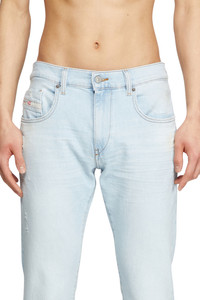 Product Description Slim fit with a medium waist and slim leg. Characterised by a comfortable construction and a clean, essential silhouette to create a minimal amount of bunching. Made using recycled cotton with a hint of stretch, this light blue comfort denim is characterised by tonal abrasions on the upper part of the jean – a distinctive Diesel trait. ID: A035580CLBF Size & Fit Model is wearing a size 32 and is 182 cm / 5'10'' Check the size chart to choose the correct size. Materials & Details Composition: 99%Cotton 1%Elastane-Spandex Fit: Slim Waist: Mid Wash: Treated Fabric: Comfort Closure: Zip fly