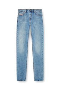 Product Description Slim style with a regular waist and straight leg. Taking inspiration from the techno music of the mid 90s, this jean features a button fly and an original Diesel attitude. Crafted using partially recycled cotton, this fix denim fabric features a light blue wash with a clean finish. ID: A0356809I29 Size & Fit Model is tall 187 cm / 6' 1.5" Check the size chart to choose the correct size. Materials & Details Composition: 100%Cotton By buying cotton products from Diesel, you’re supporting responsible cotton production through "Better Cotton”. Fit: Slim Waist: Mid Leg: Straight Wash: Clean Fabric: Non-Stretch Color: Light blue Closure: Button fly