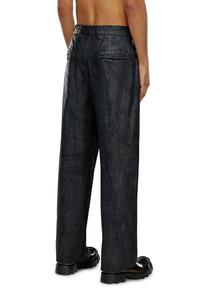 Model is wearing a size 31 and is 182 cm / 5'10'' Fits true to size, take your normal size. Slim style with regular waist and tapered leg, inspired by classic chino pants. In a bold fusion of experimentalism and rawness, this stonewashed fix denim features a black craquelé coating. Multiple layers are hand-sprayed onto the denim, which is then carefully stretched to create a cracked texture, exposing the fabric beneath. A laser treatment perfects the used effect, resulting in a uniquely textured look.
