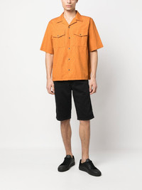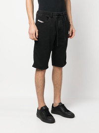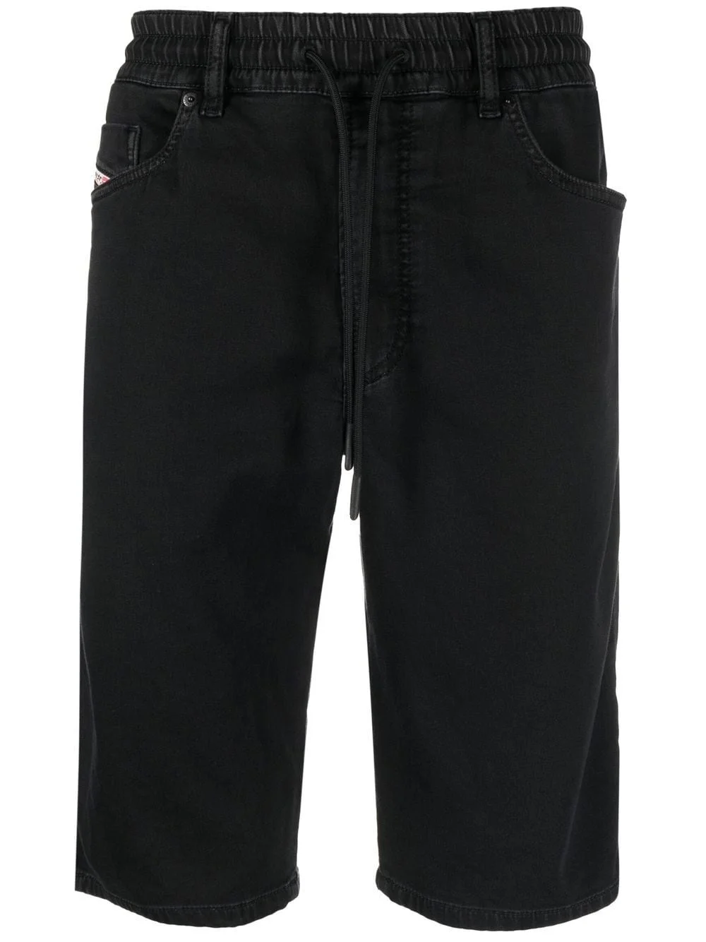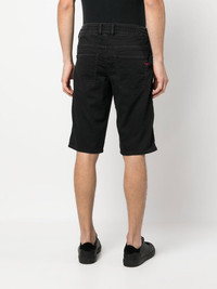 straight-leg denim bermuda shorts black cotton blend embroidered logo to the rear straight leg mid-rise elasticated drawstring waistband concealed front zip fastening classic five pockets Imported Composition Cotton 90%, Polyester 8%, Elastane 2% SIZE & FIT Model measurements Height 6 ft 1 in(1.85 m) Bust/Chest 35.82 in(91 cm) Hips 37.79 in(96 cm) Waist 29.13 in(74 cm) FittingInformation This piece fits true to size. We recommend you get your regular size Cut for a slim fit Made with a mid-weight stretch fabric