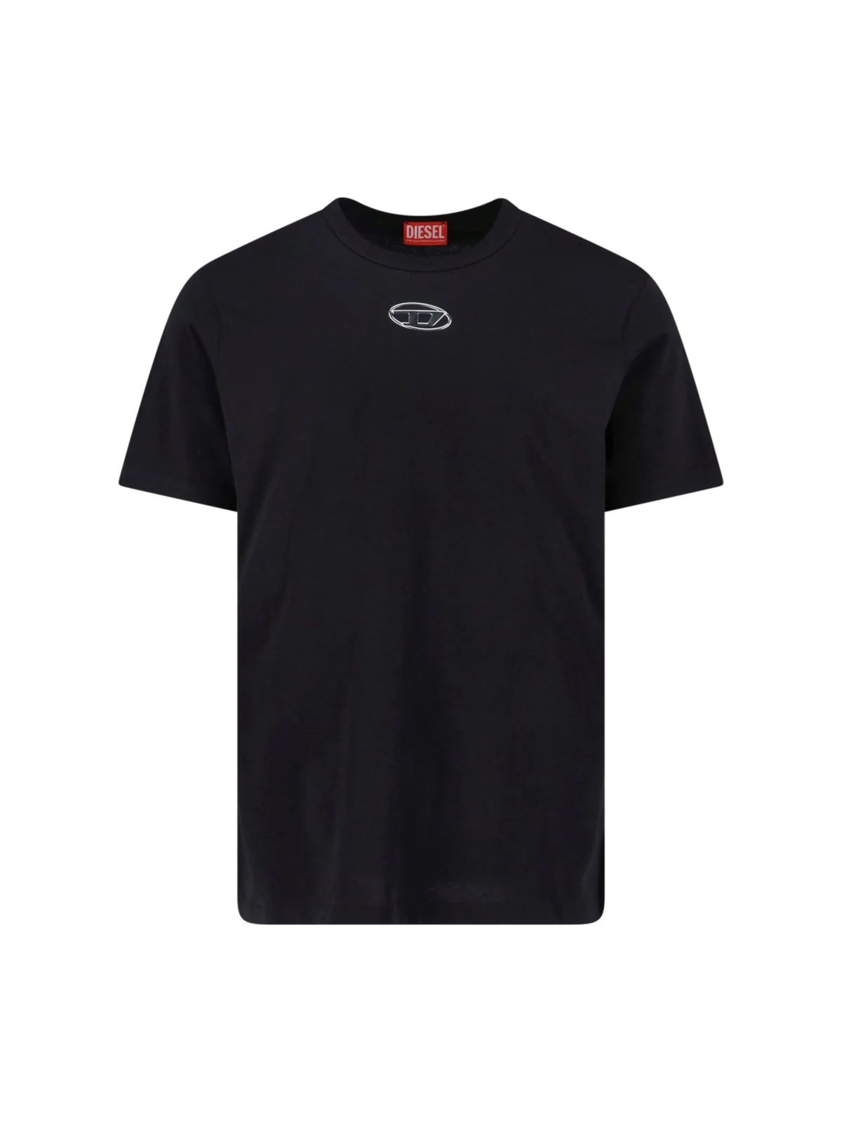 DIESEL 'T-ADJUST-OD' BLACK COTTON CREW NECK T-SHIRT WITH SHORT SLEEVES, SILVER METAL 'OVAL-D' LOGO DETAIL ON THE FRONT, STRAIGHT HEM. PRODUCT INFO PRODUCT CODE A17880 0CLBR9XX COMPOSITION: 100% COTTON SIZE AND FIT: REGULAR FIT MADE IN: BULGARIA