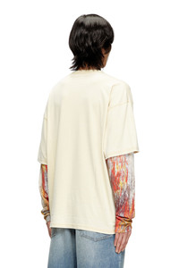 Product Description Colourful splatters and fun design reign supreme on this men’s jersey T-shirt announcing 'Everything is great, thanks for asking' - the printed graphics are an artistic collaboration expressing Diesel’s freewheeling spirit. Flanked by long ribbed sleeves with a layered effect, this relaxed tee fits a little boxy and features a burn-out wash for an authentic, worn-in feel. ID: A184480PLBQ Size & Fit Model is wearing a size L and is 182 cm / 5'10'' Check the size chart to choose the correct size. Materials & Details Composition: 65%Polyester 35%Cotton Relaxed fit Long ribbed sleeves with a layered effect