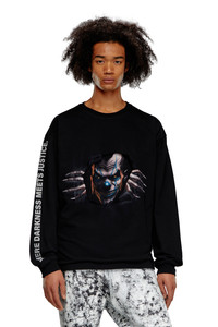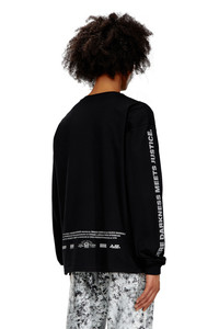 Model is wearing a size L and is 182 cm / 5'10'' Fits true to size, take your normal size. Men’s long-sleeve T-shirt from the SS24 Runway Show collection. Cut for a regular fit from black, raw-feel cotton jersey, this exclusive tee shows parodically subversive graphics that riff on classic movie posters – ripped effects at the front allow the dark character to punch out.