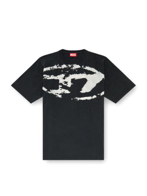 Product Description This men's T-shirt has a relaxed fit and a mega-large Oval D logo blasted over the front – the branding is flocked in a way that mimics natural distressing from years of wear. It's cut from cotton jersey with a distinctive raw hand feel and lived-in appearance. ID: A130490DQAU Size & Fit Model is wearing a size L and is 182 cm / 5'10'' Check the size chart to choose the correct size. Materials & Details Composition: 100%Cotton, Flock Print 100%Polyamide-Nylon By buying cotton products from Diesel, you’re supporting responsible cotton production through "Better Cotton”. Relaxed fit