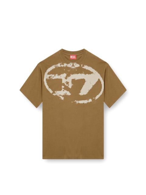 Product Description This men's T-shirt has a relaxed fit and a mega-large Oval D logo blasted over the front – the branding is flocked in a way that mimics natural distressing from years of wear. It's cut from cotton jersey with a distinctive raw hand feel and lived-in appearance. ID: A130490DQAU Size & Fit Model is wearing a size L and is 182 cm / 5'10'' Check the size chart to choose the correct size. Materials & Details Composition: 100%Cotton, Flock Print 100%Polyamide-Nylon By buying cotton products from Diesel, you’re supporting responsible cotton production through "Better Cotton”. Relaxed fit