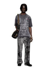 Product Description This men's organic cotton relaxed tee is part of a creative collaboration with an artist, tastefully detailed with a tonal design that takes inspiration from medieval artwork. Dyed from the inside for a subtly worn-in look with visible stitching, it features a Diesel label transfer on the chest. ID: A193140KIBW Size & Fit Model is wearing a size L and is 182 cm / 5'10'' Check the size chart to choose the correct size. Materials & Details Composition: 100%Cotton Relaxed fit