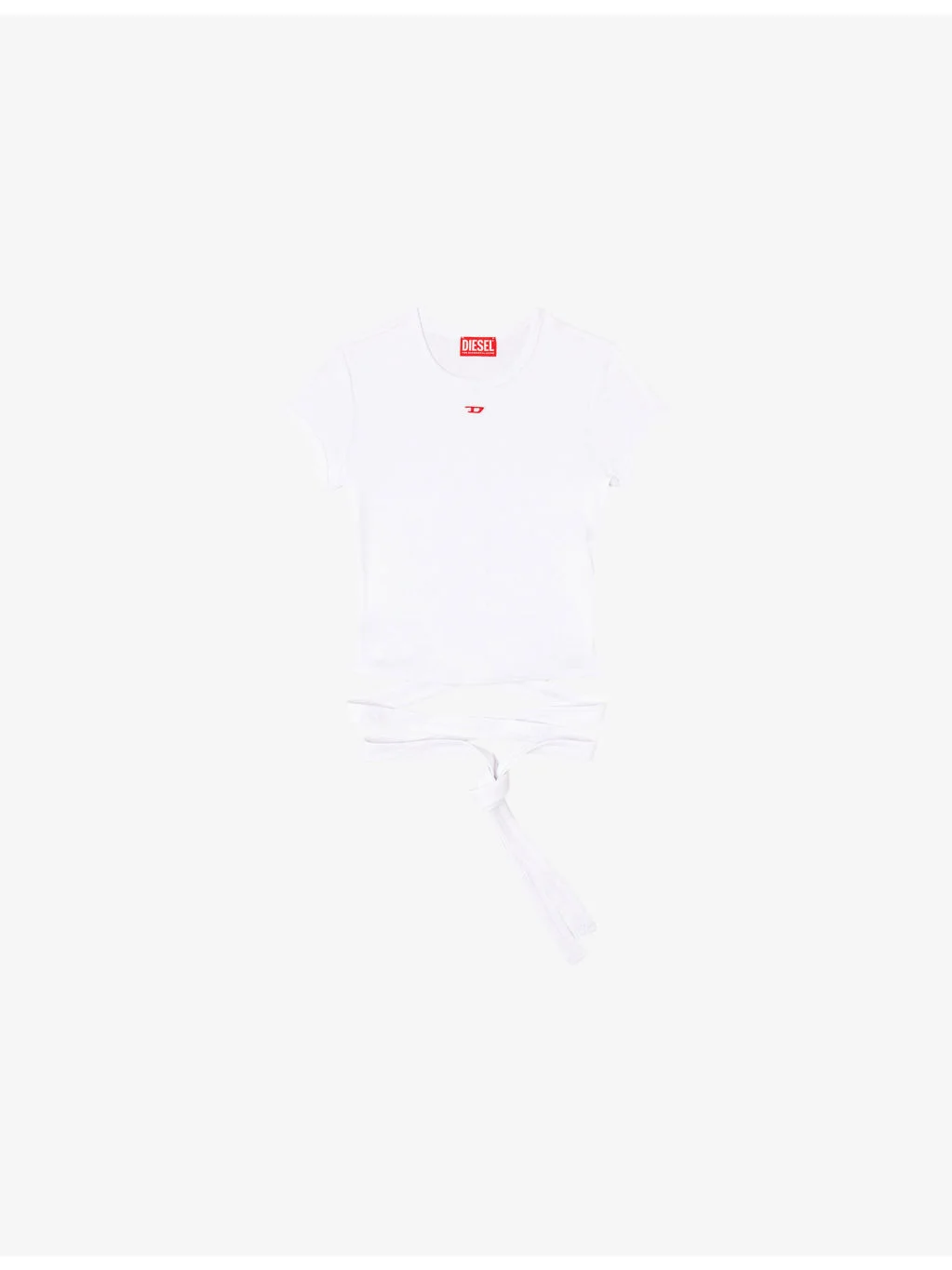 PRODUCT DETAILS - Diesel cotton-jersey T-shirt - 94% cotton, 6% elastane - Self-tie fastening - Slim fit, round-neck, short sleeves, branded embroidery to chest, wraparound tie straps to hem, cut-out back, ribbed texture - Machine wash mild - True to size - Model is 5ft 8in / 1.73m and wears a size small - Lightweight, stretchy Ref: R04479555