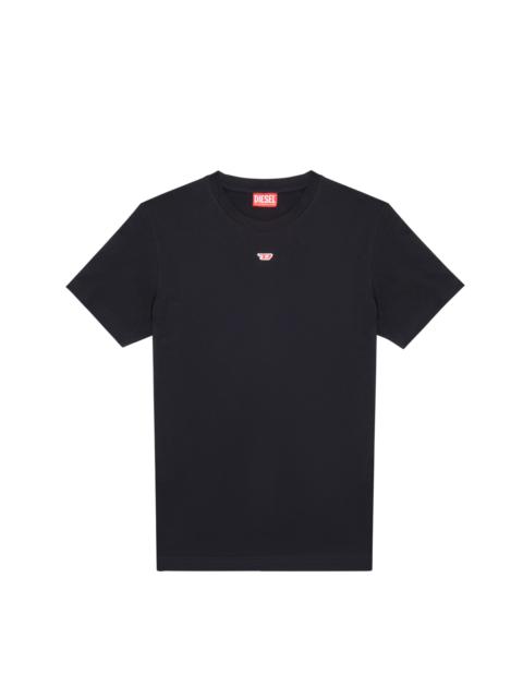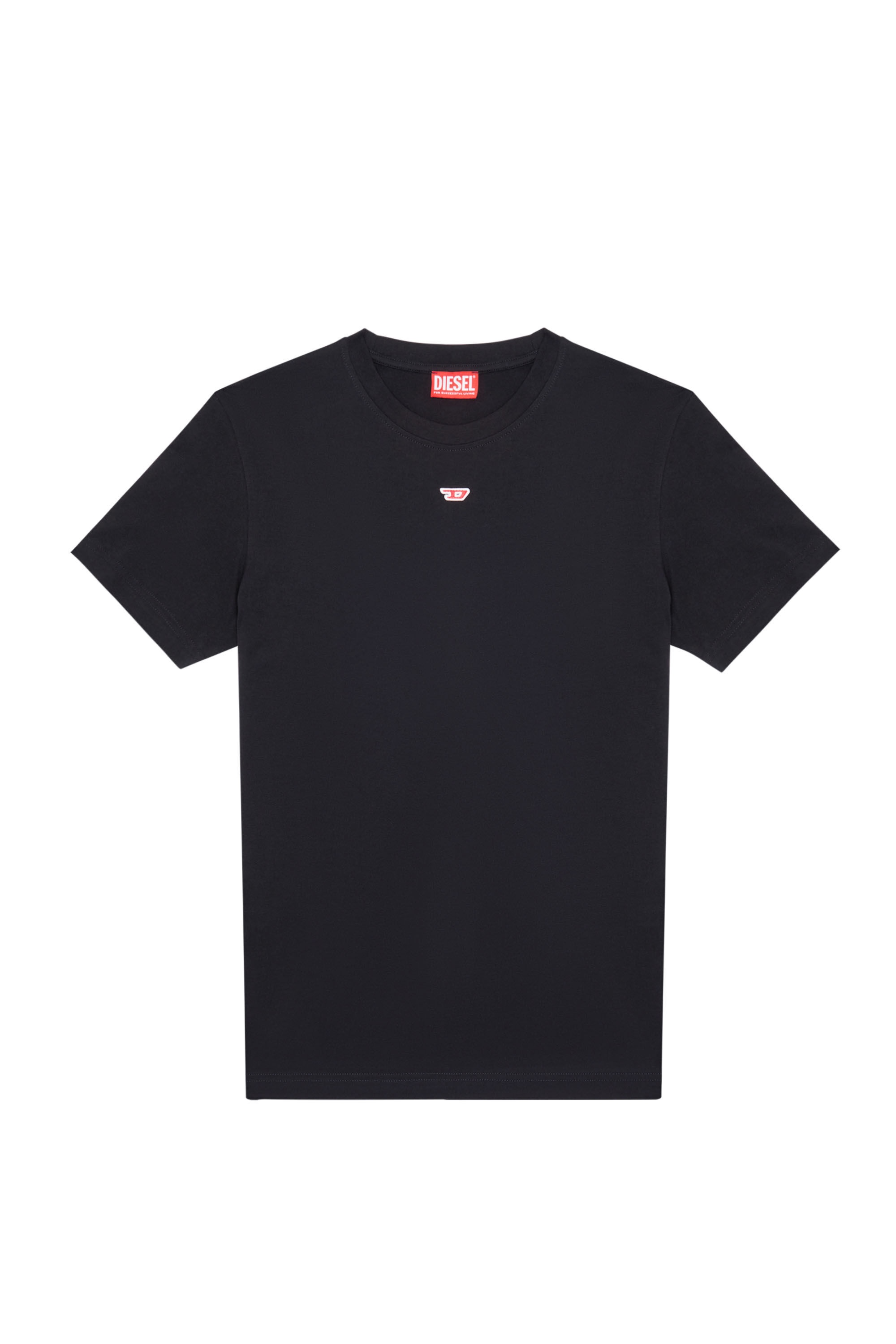 Model is wearing a size L and is 182 cm / 5'10'' Fits true to size, take your normal size. Men's jersey T-shirt crafted from organic cotton. An essential, slim-fitting style, it's appliquéd with a tiny red 'D' emblem below the crew neckline.