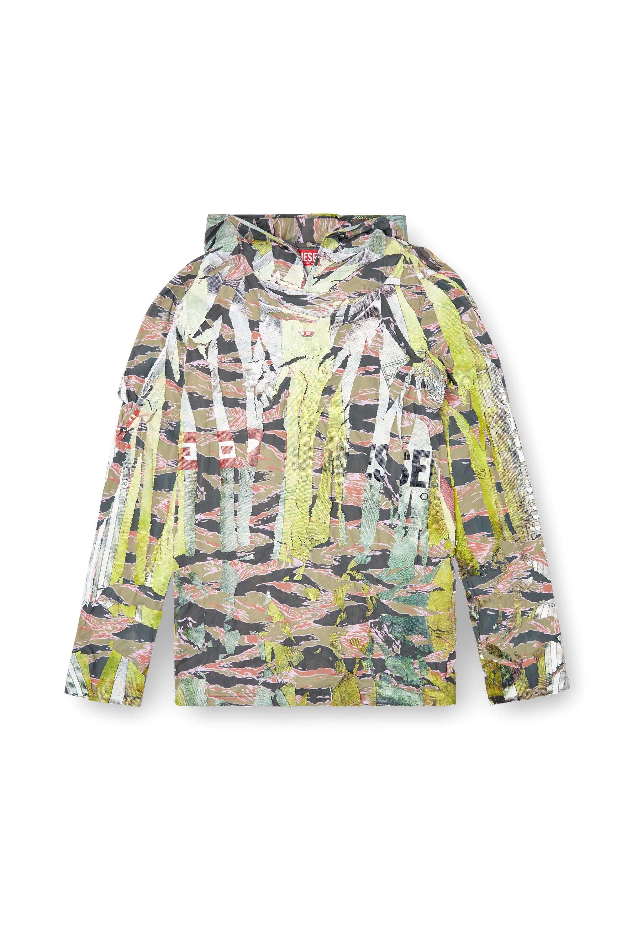 Product Description A unisex SS25 Runway Show style, this long-sleeve hooded top is an ode to Diesel's experimental vision. The fluid floral jersey is folded by hand, overprinted in a coated finish and cracked open, revealing a bricolage of graphics and trompe l'oeil draped effects: each garment is entirely unique. ID: A180720SKBT Size & Fit Model is wearing a size L and is 182 cm / 5'10''. Model is wearing a size S and is 175 cm / 5'7''. UNISEX SIZES. FOR MAN: Fits true to size, take your normal size. FOR WOMAN: Oversize fit, woman that prefers regular fit may order one size down. Materials & Details Composition: 88%Polyamide-Nylon 12%Elastane-Spandex Spring Summer 2025 Runway Show Unisex