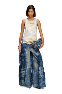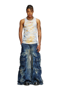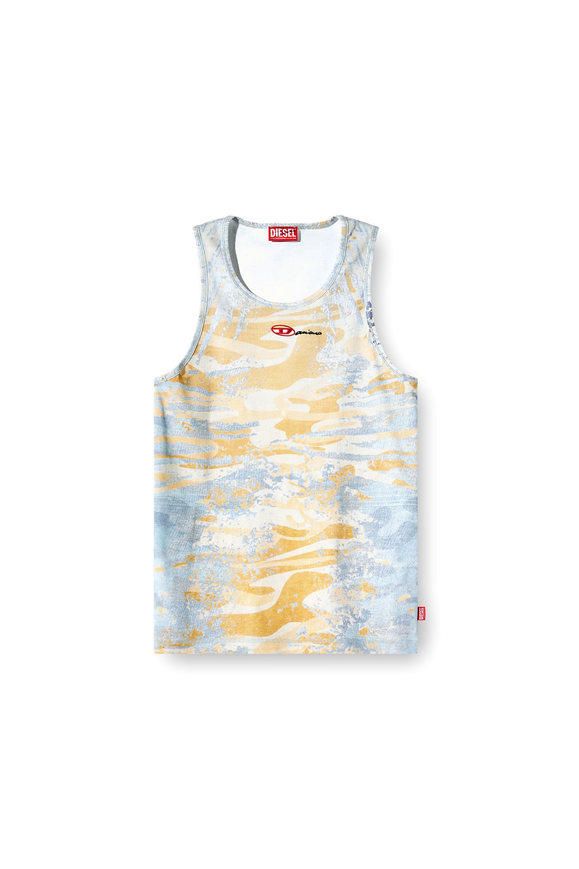 Product Description This men’s tank top belongs to an exclusive, limited-edition capsule, co-designed by Diesel’s creative director Glenn Martens and Maneskin’s lead vocalist Damiano David. Cut for a close fit, it's made from lightweight, finely ribbed stretch cotton fabric printed all-over with a camouflage pattern. The collection's co-branding accents the chest. ID: A178560SPEZ Size & Fit Model is wearing a size L and is 182 cm / 5'10''. Model is wearing a size S and is 175 cm / 5'7''. UNISEX SIZES. FOR MAN: Fits true to size, take your normal size. FOR WOMAN: Oversize fit, woman that prefers regular fit may order one size down. Materials & Details Composition: 96%Cotton 4%Elastane-Spandex Diesel x Damiano David capsule collection Slim fit