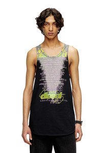 Product Description Men's organic cotton vest featuring a burnished, distressed effect. Part of the Remaster collection, a celebration of the underground club scene and Diesel's long-standing alliance with the DJ community. The grey iteration is embellished on the back with a phrase chosen by LSDXOXO: "A piece of music from the future, otherworldly, it encapsulates the feeling of an unforgettable night out. Like every great evening spent in club land, it has its peaks and valleys, a little glamour sprinkled throughout." ID: A197350PLBL Size & Fit Male model is wearing a size L and female model is wearing a size L. UNISEX SIZES. FOR MAN: Fits true to size, take your normal size. FOR WOMAN: Oversize fit, woman that prefers regular fit may order one size down. Materials & Details Composition: 100%Cotton Remaster capsule collection Racerback design Cover stitching