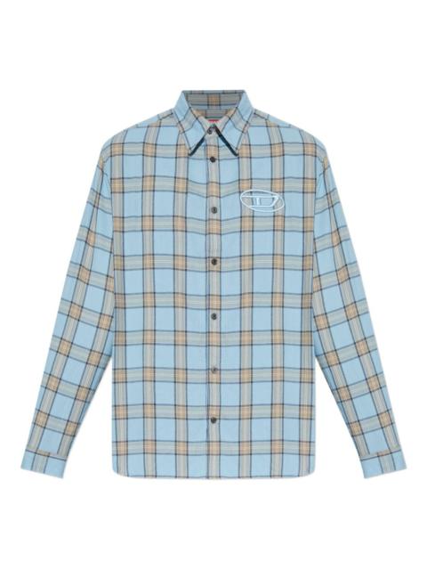S-Simply-Ajfi embroidered checked shirt Highlights - Light blue - Checked pattern - Embroidered logo - Long sleeves - Button fastening - Classic collar Imported Composition Cotton 100% Washing instructions Read Manufacturer Guidelines