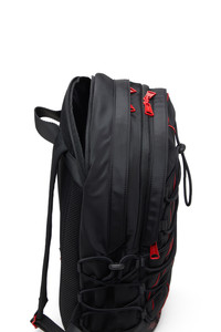 Product Description This unisex black nylon backpack is a spacious ultra-functional carryall that’s modern and sporty. Featuring a top handle and comfortable straps with metal adjusters, it’s kitted with three zipped compartments, a separate zipped section with room for a 15" laptop, hiking-inspired bungee cords and a handy internal pocket for a water bottle. The front is decorated with a jumbo-sized Oval D logo in beautifully rich red cord embroidery. ID: X10408P3914 Materials & Details Composition: 100%Polyester Top back handle and adjustable shoulder straps 4 zipped compartments (including one padded for a 15" laptop)Adjustable bungee cords at front and sidesInside: 4 zip pockets and bottle holder pocketUnisex