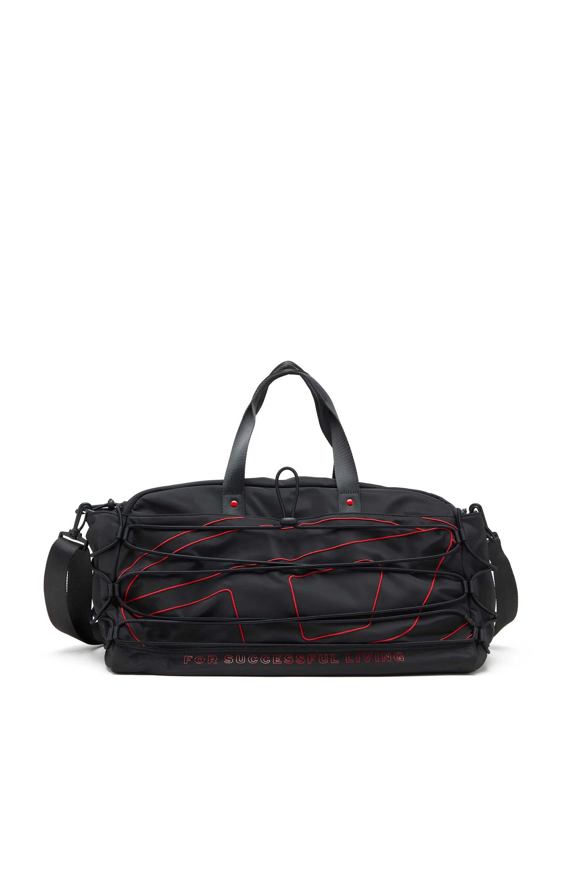 Product Description A sporty, modern holdall for every occasion, this unisex duffle bag is made from black nylon and decorated with a jumbo-sized Oval D logo in beautifully rich red cord embroidery. It features multiple external and internal pockets and utilitarian bungee cords for an instant boost in functionality. ID: X10412P3914 Materials & Details Composition: 100%Polyester Top handles and detachable adjustable shoulder strap Multiple zipped and open pockets inside and outAdjustable bungee cords at front and sidesUnisex
