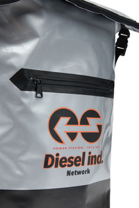 PRODUCT ID: X08736P4635 - 70%Polyvinylchloride 30%Polyester - Top handle - Adjustable padded shoulder straps - Zip and buckle-fastening roll top - External zip pocket and D-ring - Inside: laptop sleeve This men's sporty backpack is built from shiny tarpaulin—a durable utilitarian fabric that repels water. Emblazoned with a graphic logo print, it has a matte black base and a roll-top profile with buckles for adjustable volume.