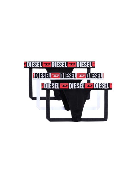 Product Description Three-pack of jockstraps. Each pair is crafted from stretch cotton and topped with an all-over Diesel Denim Division logo waistband. ID: 00SH9I0DDAI Size & Fit Model is wearing a size L and is 182 cm / 5'10'' Check the size chart to choose the correct size. Materials & Details Composition: 95%Cotton 5%Elastane-Spandex, Elastic 65%Polyamide-Nylon 23%Polyester 12%Elastane-Spandex By buying cotton products from Diesel, you’re supporting responsible cotton production through "Better Cotton”. Set of 3 pairs Elasticated logo waistband