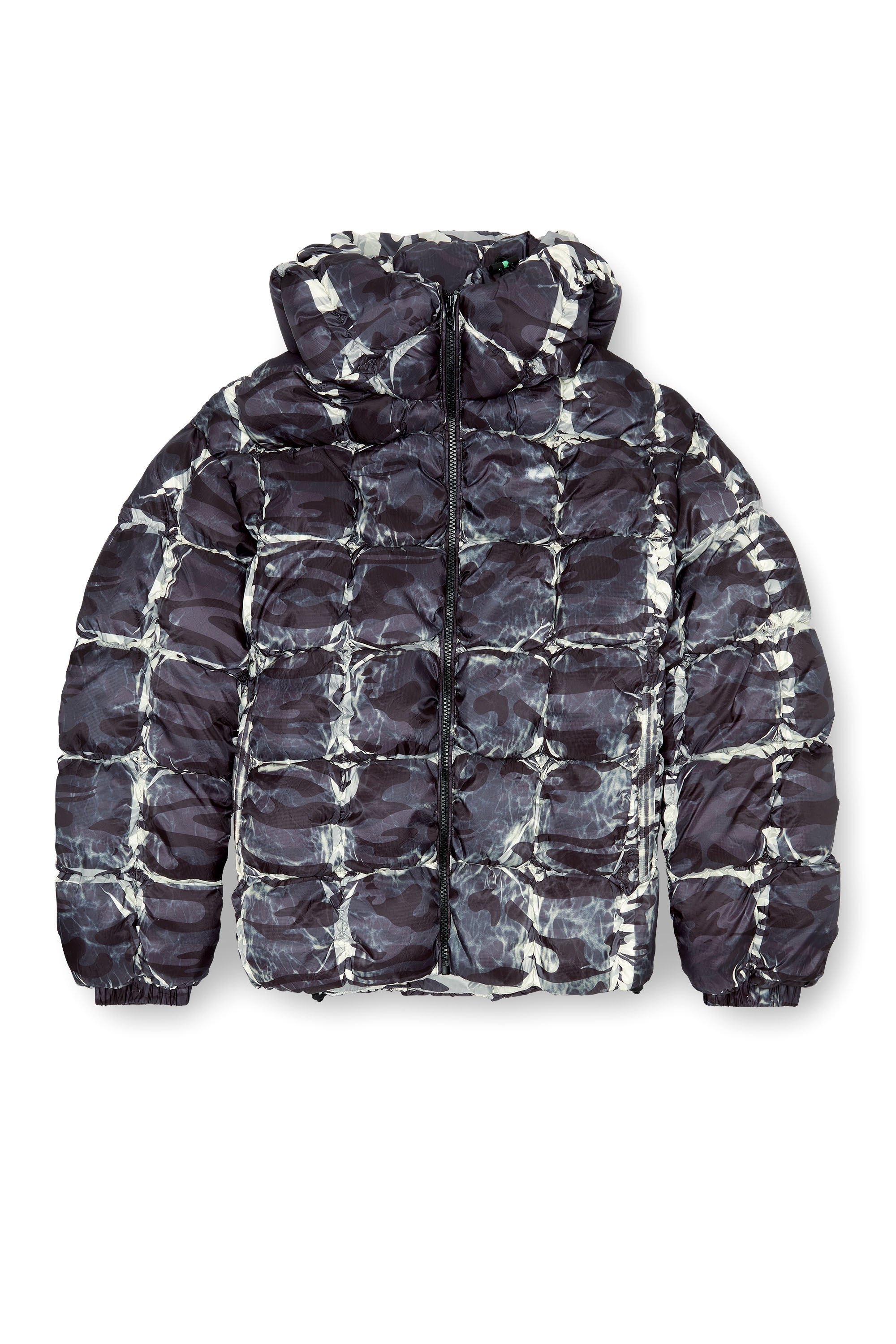 Product Description This men’s tonal-grey puffer jacket is made using recycled materials. Cut from camouflage micro ripstop, it’s filled with insulating padding and quilted in puffy squares – the construction is highlighted through an overprinted finish. Bungee cords at the hood and hem secure the fit. ID: A145290SKAG Size & Fit Model is wearing an IT size 48 and is 188 cm / 6'2" Check the size chart to choose the correct size. Materials & Details Composition: 100%Polyester Zip closure Drawstring hood and hem Zip pockets Elasticated cuffs Lined and padded