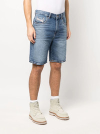 washed denim shorts medium blue cotton washed denim logo patch to the front embroidered logo to the rear classic five pockets concealed fly and button fastening belt loops mid-rise Conscious: This item contains cotton from a brand that is committed to improving farming practices globally through the Better Cotton Initiative (BCI). Imported Composition Cotton 100% Washing instructions Machine Wash