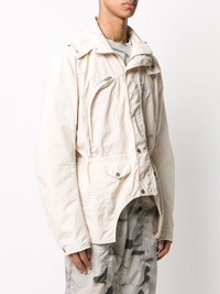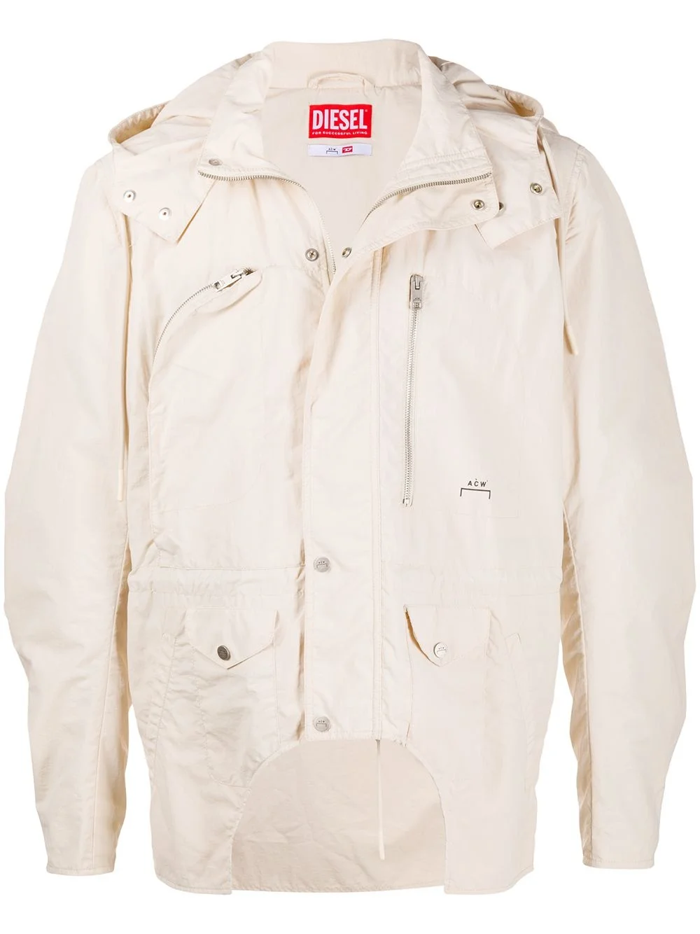 x A-Cold-Wall multi-pocket hooded jacket Highlights - Bone white - Drawstring hood - Stand-up collar - Long sleeves - Front press-stud and zip fastening - Two zip-fastening chest pockets - Drawstring waist - Logo print at the chest - Cut-out detailing Made in Italy Composition Nylon 100% SIZE & FIT Model measurements Height 6 ft 2 in(1.87 m) Bust/Chest 38.18 in(97 cm) Hips 36.61 in(93 cm) Waist 29.13 in(74 cm) FittingInformation This piece fits true to size. We recommend you get your regular size Cut for a loose fit Made with a mid-weight non-stretch fabric