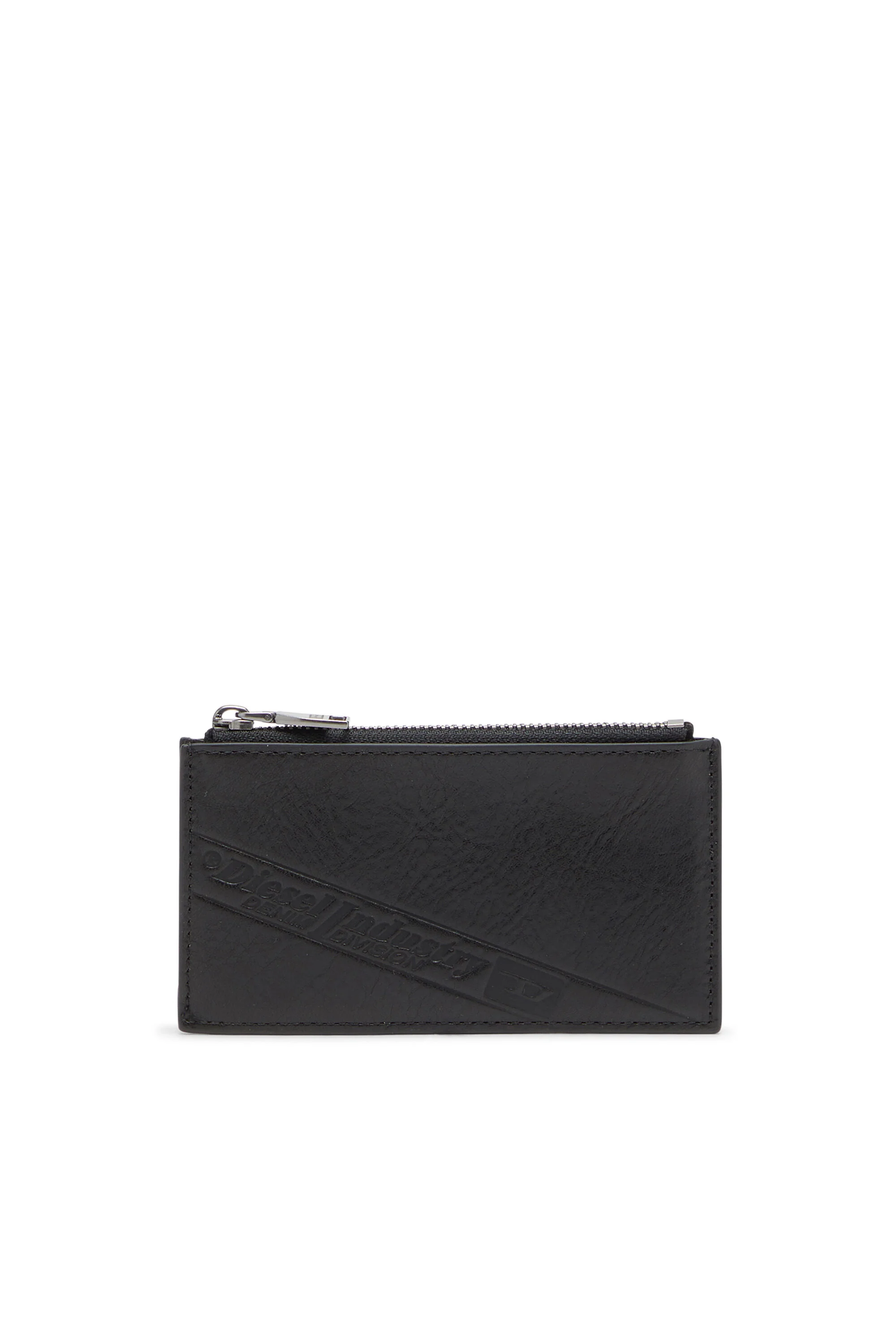 Product Description Cardholder crafted in leather with a hammered texture, featuring a minimalist design and embossed Diesel Industry logo. The practical zip closure ensures the protection of personal items, while multiple compartments allow for optimal card organization. An essential accessory for those seeking a clean and functional look. ID: X10617P8811 Materials & Details Composition: 100%Cow Leather Zip closure Credit card slots Integrated coin purse Compact and functional design