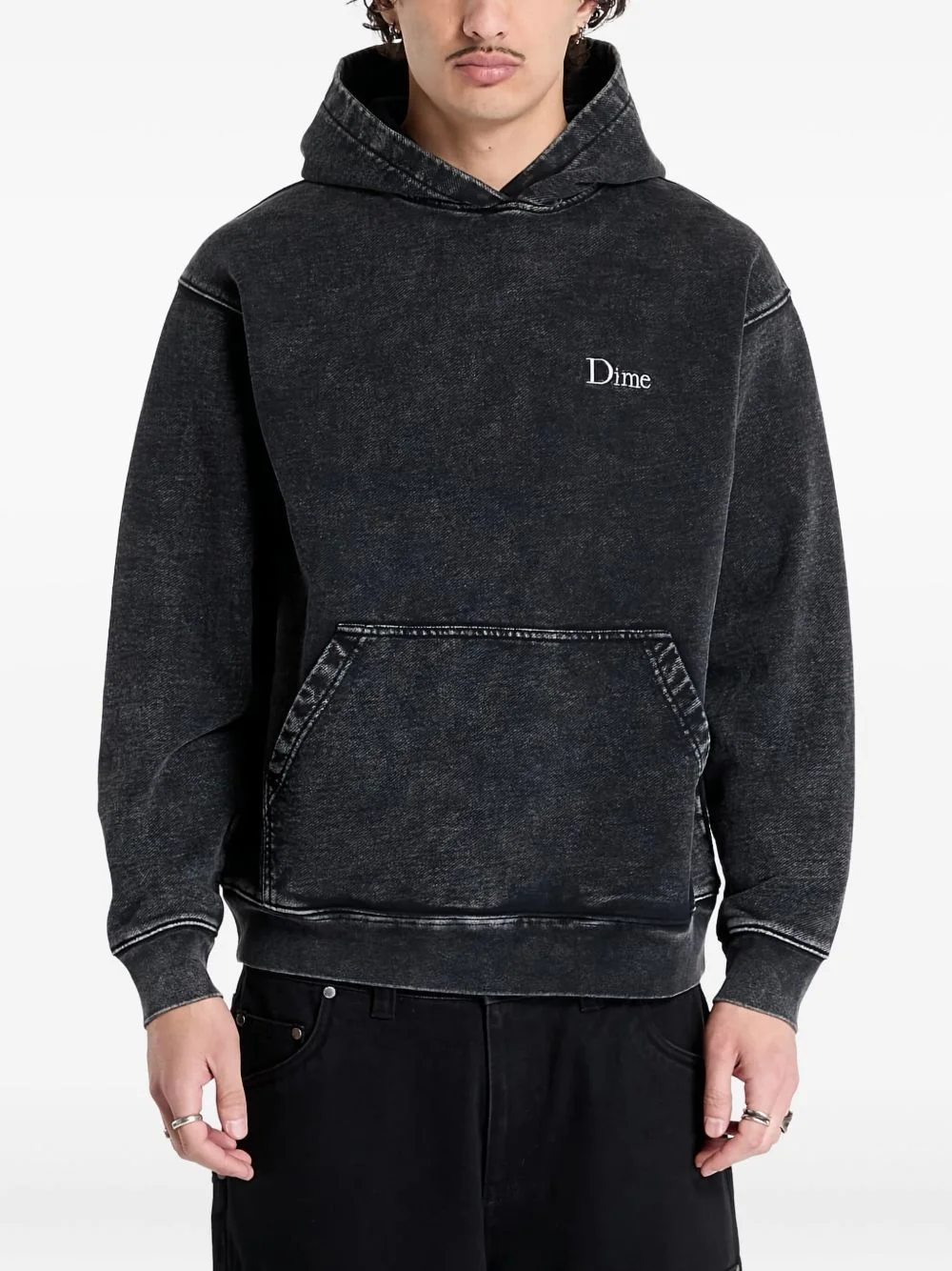 logo-embroidered hoodie Highlights - Black - Acid wash effect - Front pouch pocket - Classic hood - Long sleeves - Ribbed cuffs Imported Composition Cotton 100% Washing instructions Read Manufacturer Guidelines