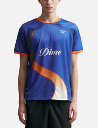 - Dime - Short Sleeve Pitch Jersey - Lightweight poly fabric - Contrasting neck trims and cuffs - Graphic prints at front - Straight hem - Color: Royal Blue - Material: 100% Polyester - See more SS T-Shirts, T-Shirts and Clothing SIZING - Model wears size M - Model measures: Height 184cm, Chest 29"/73cm, Waist 24"/62cm, Hip 35"/90cm