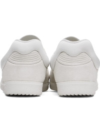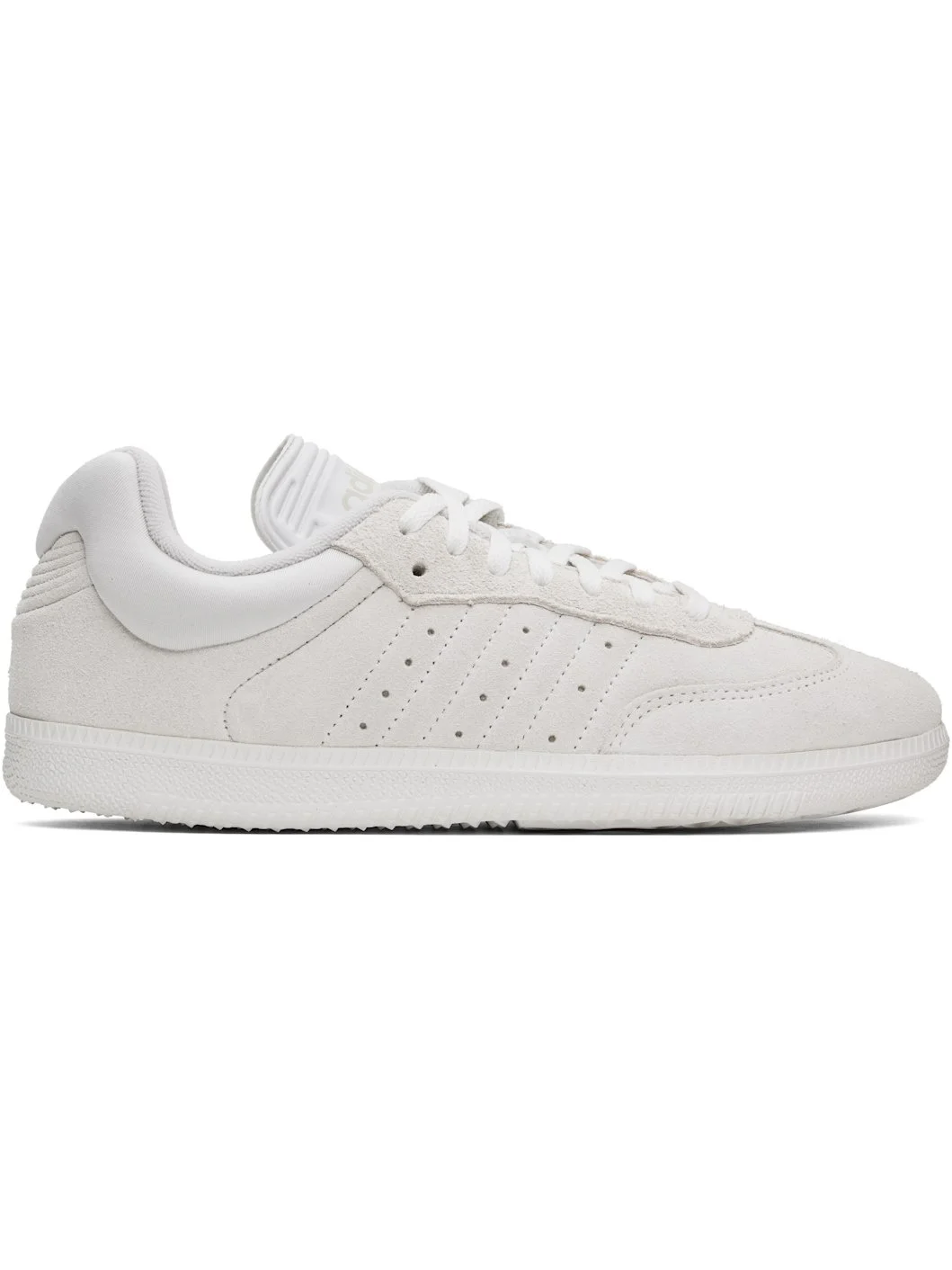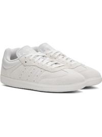 Low-top suede sneakers in off-white. · Lace-up closure · Embossed detailing and logo at tongue · Padded collar · Perforations at sides · Quilted signature stripes at sides · Terrycloth lining · Treaded rubber sole Part of the Dingyun Zhang x adidas Originals collaboration. Supplier color: White vapour/White vapour/Grey one Upper: leather. Sole: rubber. Made in Viet Nam 251797M237004