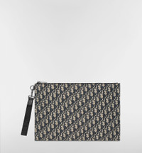 The A4 pouch presents a streamlined silhouette. Crafted in beige and black Dior Oblique jacquard, it is enhanced by the Dior signature on the front. Its zip compartment features three slip pockets and four card slots. Thanks to its removable wrist strap, the pouch may be carried by hand or slipped into a bag. - Main composition: cotton, technical fabric and calfskin - Technical fabric, cotton and calfskin lining - Main zip compartment - Three interior slip pockets - Four card slots in grained calfskin - D-ring to attach accessories - Removable Christian Dior nylon jacquard wrist strap - Ruthenium-finish brass Dior signature on the front - Embossed Dior signature on the interior - Dust bag included - Made in Italy or Spain Size & Fit - Dimensions: 37 x 25 x 2 cm / 14.5 x 10 x 1 inches (Length x Height x Width) - The size is suitable for A4 and travel documents - Size and weight details may vary depending on the product's material