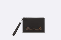 The A5 pouch is an elegant and streamlined accessory from the exclusive collaboration with CACTUS JACK. Crafted in black grained calfskin, it is enhanced by an embroidered CACTUS JACK DIOR signature. The zipped compartment features a patch pocket to accommodate a card holder. Featuring a removable leather strap, the pouch may be carried by hand or slipped into a bag, and can be combined with other CACTUS JACK DIOR creations. - Black Grained Calfskin - Embroidered CACTUS JACK DIOR signature - Embossed CACTUS JACK DIOR signature on interior - Ruthenium-finish brass zip closure - Removable leather strap - Interior patch pocket - Card-holder compartment - Dust bag included - Made in Italy Size & Fit - Dimensions: 26.5 x 17.5 cm / 10.5 x 7 inches - The size is suitable for A5 and US letter-sized documents