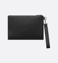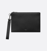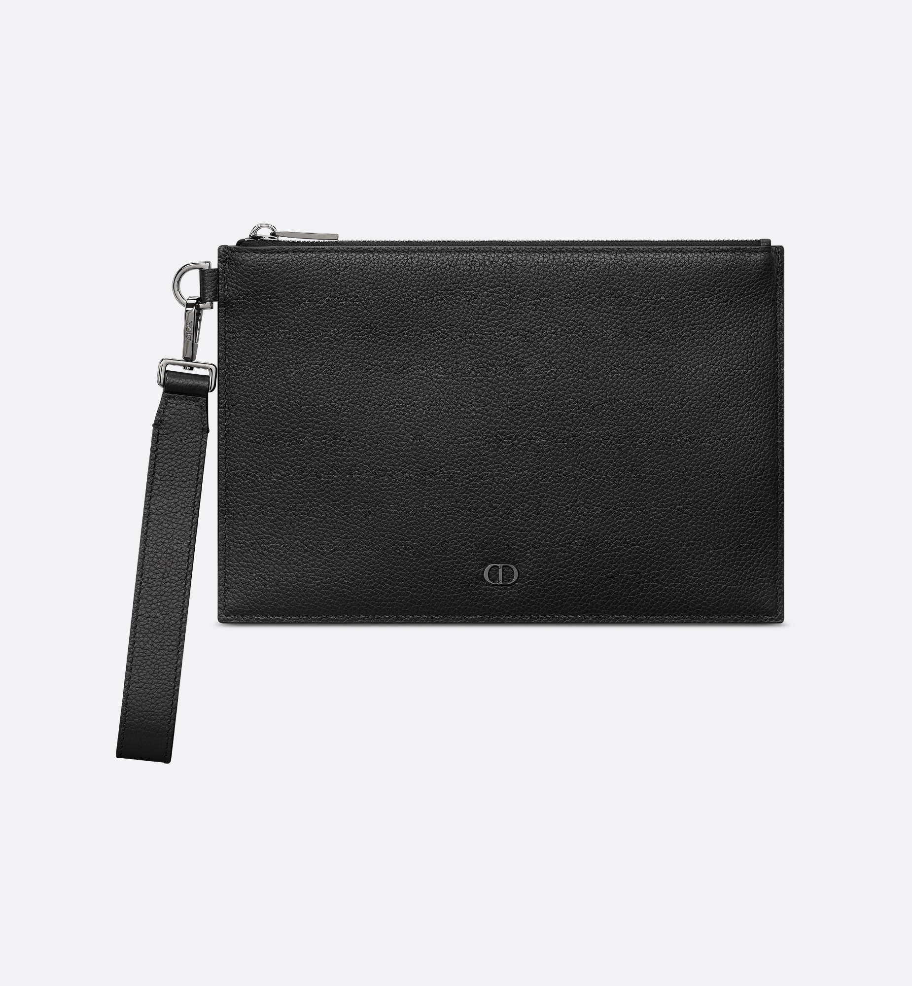 The A5 pouch is an elegant and streamlined accessory. Crafted in black grained calfskin, it is embellished with the CD Icon signature on the front. The zip compartment features a slip pocket for a phone and four card slots. Thanks to its wrist strap, the pouch may be carried by hand or slipped into a bag. - Main composition: calfskin - Technical fabric and calfskin lining - Interior slip pocket - Four card slots in grained calfskin - Removable wrist strap - D-ring to attach accessories - Ruthenium-finish brass CD Icon signature on the front - Embossed Dior signature on the interior - Dust bag included - Made in Italy/Spain Size & Fit - Dimensions: 26.5 x 17.5 cm / 10.5 x 7 inches (Length x Height) - The size is suitable for A5 and US letter-sized documents - Size and weight details may vary depending on the product's material