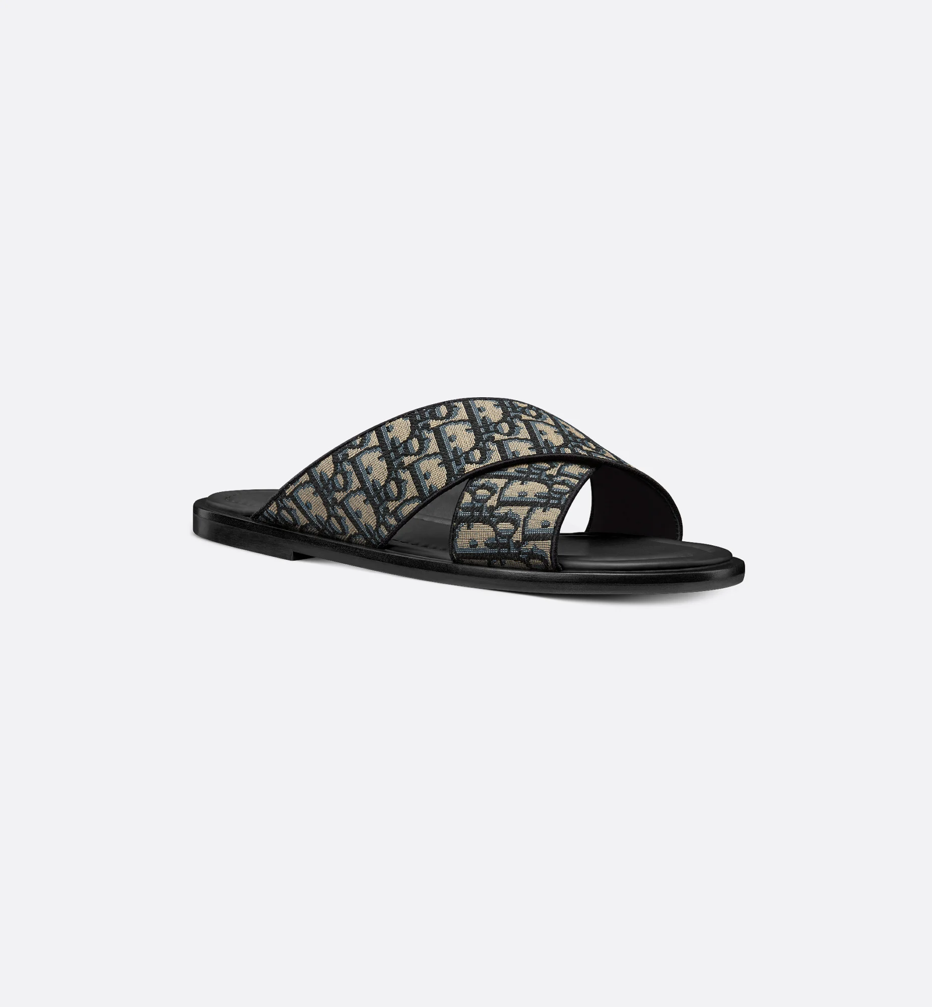 New for summer 2023, the Dior Alias sandal is a laid-back yet refined creation. Crafted in beige and black Dior Oblique jacquard, the style showcases a cross-strap design. Completed by a black leather and rubber sole for optimal comfort and enhanced by a Dior Oblique anti-slip insert, the sandal will pair effortlessly with any casual look from the season. - Beige and black Dior Oblique jacquard - Black calfskin insole - Black rubber outsole with Dior Oblique anti-slip insert - Welded construction - Dust bag included - Made in Italy Size & Fit - The shoe runs small, please order a half size up if you have a narrow instep, and one size up if you have a standard instep - For more information, please review the size guide