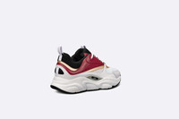 The B22 sneaker reimagines the chunky sneaker through a retro lens. Combining different materials and textures, including burgundy and white calfskin, gold-tone laminated calfskin and white and black technical mesh, it has a bold, sportswear aesthetic. Round laces and a raised Dior signature on the side complement the thick sculpted rubber sole in white with black edging. The sneaker can be worn with any casual piece for a sporty and contemporary silhouette. - White and black technical mesh - Burgundy, white and gold-tone calfskin - Dior signature on the side - Low-top - Nylon tabs and lace-up closure - Nylon and calfskin lining - Sculpted white rubber outsole with black edging - Welded construction - Dust bag included - Made in Italy Size & Fit - The shoe runs small, please order a full size up - For more information, please review the size guide