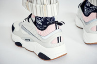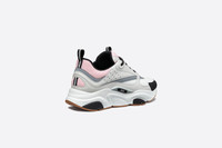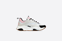 The B22 sneaker reimagines the chunky sneaker through a retro lens. Combining different materials and textures, including gray smooth calfskin and pink and white technical mesh, it has a bold, sportswear aesthetic. Round laces and a raised 'DIOR' signature on the side complement the thick, sculpted rubber sole in beige with black edging. The sneaker can be worn with any casual piece for a sporty and contemporary silhouette. - Pink and white technical mesh - Gray smooth calfskin - 'DIOR' signature on the side - Low-top - Nylon tabs and lace-up closure - Nylon and calfskin lining - Beige sculpted rubber outsole with black edging - Welded construction - Dust bag included - Made in Italy Size & Fit - The shoe runs small, please order a full size up - For more information, please review the size guide
