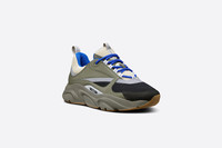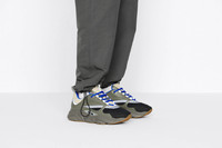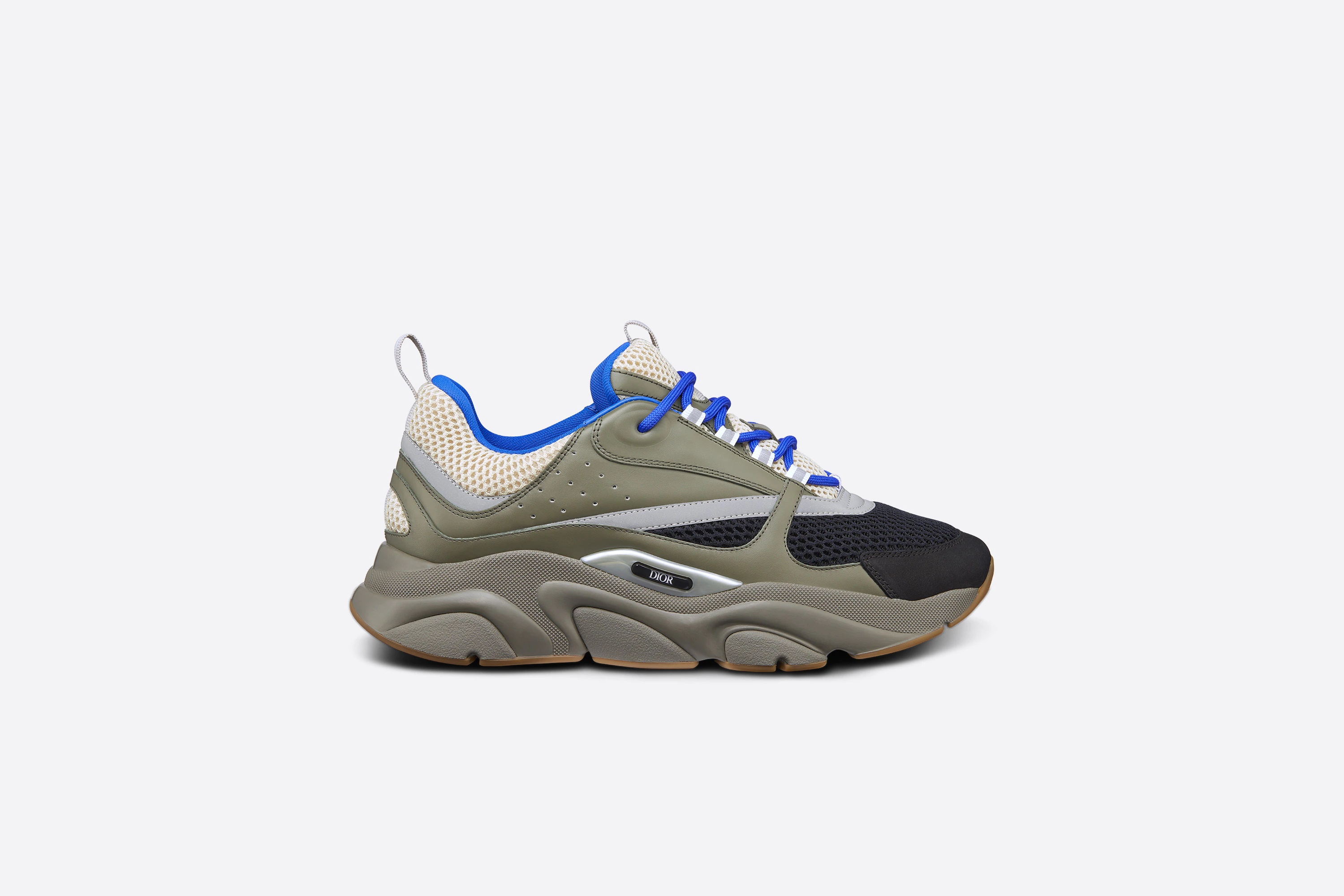 The B22 sneaker reimagines the chunky sneaker through a retro lens. Combining different materials and textures, including olive smooth calfskin and cream and black technical mesh, it has a bold, sportswear aesthetic. Round laces and a raised 'DIOR' signature on the side complement the thick, sculpted rubber sole in olive. The sneaker can be worn with any casual piece for a sporty and contemporary silhouette. - Cream and black technical mesh - Olive smooth calfskin - 'DIOR' signature on the side - Low-top - Nylon tabs and lace-up closure - Nylon and calfskin lining - Olive sculpted rubber outsole - Welded construction - Dust bag included - Made in Italy Size & Fit - The shoe runs small, please order a full size up - For more information, please review the size guide