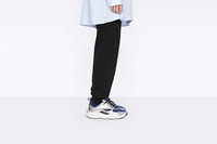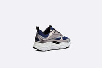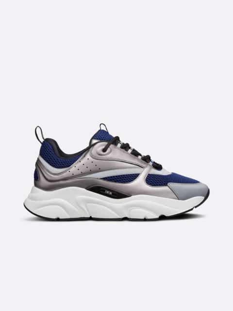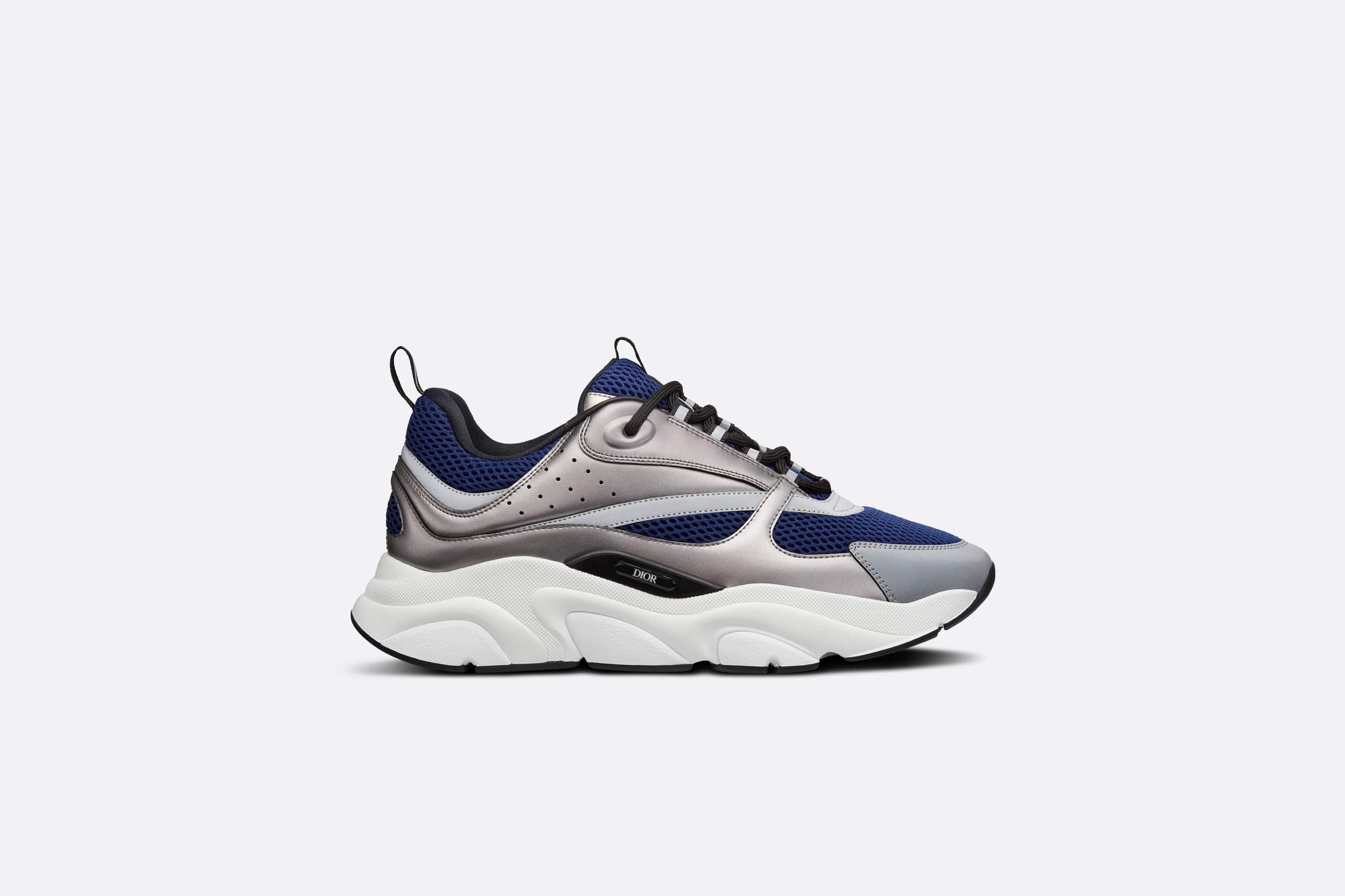 The B22 sneaker reimagines the chunky sneaker through a retro lens. Combining different materials and textures, including silver-tone smooth calfskin and blue technical mesh, it has a bold, sports-inspired aesthetic. Round laces and a raised 'DIOR' signature on the side complement the thick, white, sculpted rubber sole with black edging. The sneaker can be worn with any casual piece for a sporty and contemporary silhouette. - Blue technical mesh - Silver-tone smooth calfskin - 'DIOR' signature on the side - Low-top - Nylon tabs and lace-up closure - Nylon and calfskin lining - Sculpted white rubber outsole with black edging - Welded construction - Dust bag included - Made in Italy Size & Fit - The shoe runs small, please order a full size up - For more information, please review the size guide
