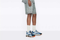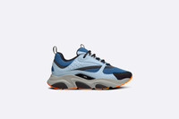 The B22 sneaker reimagines the chunky sneaker through a retro lens. Combining different materials and textures, including light blue smooth calfskin and blue technical mesh, it has a bold, sportswear aesthetic. Round laces and a raised 'DIOR' signature on the side complement the thick sculpted rubber sole in gray and black with orange edging. The sneaker can be worn with any casual piece for a sporty and contemporary silhouette. - Blue technical mesh - Light blue smooth calfskin - 'DIOR' signature on the side - Low-top - Nylon tabs and lace-up closure - Nylon and calfskin lining - Gray and black rubber outsole with orange edging - Welded construction - Dust bag included - Made in Italy Size & Fit - The shoe runs small, please order a full size up - For more information, please review the size guide