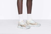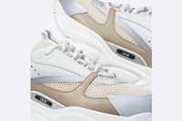 The B22 sneaker reimagines the chunky sneaker through a retro lens. Combining different materials and textures, including beige and white smooth calfskin and cream technical mesh, it has a bold, sportswear aesthetic. Round laces and a raised 'DIOR' signature on the side complement the thick, sculpted, white rubber sole. The sneaker can be worn with any relaxed outfit for a sporty and contemporary silhouette. - Cream technical mesh - Beige and white smooth calfskin - 'DIOR' signature on the side - Low-top - Nylon tabs and lace-up closure - Nylon and calfskin lining - Sculpted white rubber outsole with cream edging - Welded construction - Dust bag included - Made in Italy Size & Fit - The shoe runs small, please order a full size up - For more information, please review the size guide