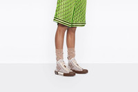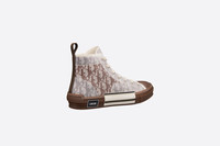 The B23 high-top sneaker stands out thanks to its layering of transparent paneling and coffee Dior Oblique canvas. The design maintains timeless sneaker codes, including laces and eyelets on the front, a beige rubber sole, a rounded reinforced toe and a rear tab. The sneaker is further enhanced with contrasting details on the sides, including a 'DIOR' signature. It will pair easily with any casual outfit. - Coffee Dior Oblique canvas with transparent paneling - Patchwork-effect sole with ‘Dior’ signature - High-top - Lace-up closure with back tab - Microfiber lining - Coffee and beige rubber outsole and reinforced toe with two-tone insert - Welded, side-sewn construction - Dust bag included - Made in Italy Size & Fit - The style fits true to size: we recommend ordering your normal shoe size - For more information, please review the size guide