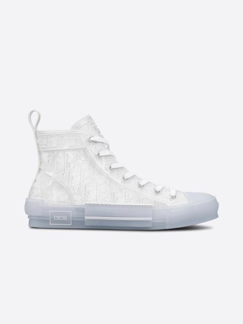 The B23 high-top sneaker offers a new variation in transparent canvas enhanced by the Dior Oblique motif created with injected blue rubber for a raised effect. The style maintains timeless sneaker details such as eyelets and a lace-up front, a transparent rubber sole, a rounded and reinforced toe as well as a rear tab. Further enhanced by tonal details on the sides and a contrasting 'DIOR' signature, the B23 sneaker pairs easily with any casual outfit. - Transparent canvas with blue injected rubber Dior Oblique motif - Patchwork-effect sole with ‘Dior’ signature - High-top - Lace-up closure with back tab - Microfiber lining - Transparent reinforced rubber toe and outsole - Welded, side-sewn construction - Dust bag included - Made in Italy Size & Fit - The style fits true to size: we recommend ordering your normal shoe size - For more information, please review the size guide