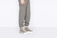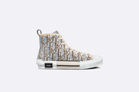 The B23 high-top sneaker is boldly reimagined by Kim Jones and features the hallmark greige Dior Oblique motif embroidered with wool thread. Essential details, such as eyelets and a lace-up front, a white rubber sole with contrasting inserts, a rounded and reinforced toe as well as a rear heel tab recall the codes of the classic high-top style, completed with supple calfskin lining. The sneaker pairs well with any casual outfit. - Greige Dior Oblique Tapestry - Patchwork-effect sole with 'Dior' signature - High-top - Lace-up closure with back tab - Microfiber and calfskin lining - White rubber outsole with two-tone tread pattern - Welded, side-sewn construction - Dust bag included - Made in Italy Size & Fit - The style fits true to size: we recommend ordering your normal shoe size - For more information, please review the size guide