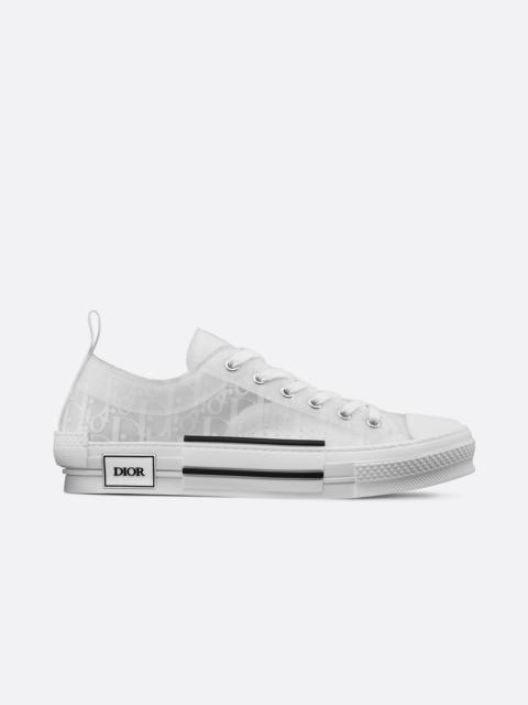 The B23 low-top sneaker is distinguished by its layering of transparent paneling and white and navy blue Dior Oblique canvas. Essential details, such as a lace-up front with eyelets, a gray rubber sole, a rounded and reinforced toe as well as a rear tab all recall the codes of the classic low-top style. The sneaker is further enhanced with contrasting details on the sides–including a 'DIOR' signature–and pairs easily with any casual outfit. - White and navy blue Dior Oblique canvas - Transparent panels - Patchwork-effect sole with 'DIOR' signature on the side - Low-top silhouette - Lace-up closure with rear tab - Microfiber synthetic leather lining - Gray rubber outsole with white insert - Welded, side-sewn construction - Dust bag included - Normal fit, please choose your regular shoe size - Made in Italy
