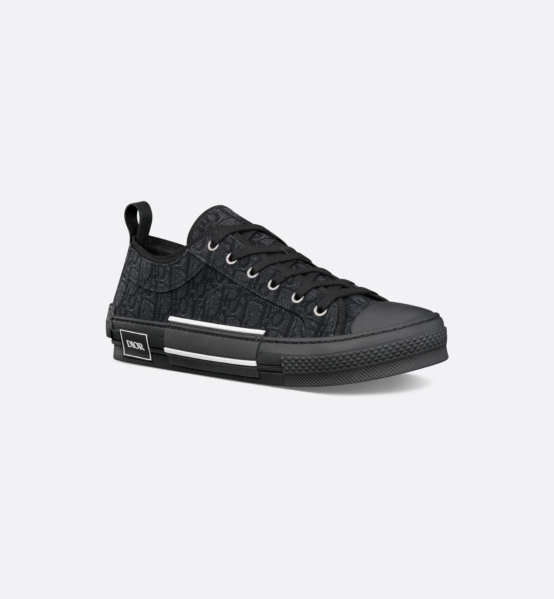The B23 low-top sneaker showcases black Dior Oblique jacquard. Timeless sneaker elements, such as eyelets and a lace-up front, a black rubber sole with tonal panels, a rounded and reinforced toe as well as a rear pull tab, are all completed with technical fabric lining. The sneaker will pair well with any casual outfit. - Main composition: cotton, technical fabric and brass - Technical fabric lining - Patchwork-effect sole with Dior signature on the side - Low top - Lace-up closure with rear tab - Black rubber outsole with two-tone tread pattern - Welded, side-sewn construction - Dust bag included - Additional set of black laces provided - Made in Italy Size & Fit - The style fits true to size, we recommend ordering your normal shoe size - Weight: 410 g / 14.5 ounces - Using our personalized tool will provide you with the best size recommendation - For more information, please review the size guide
