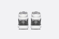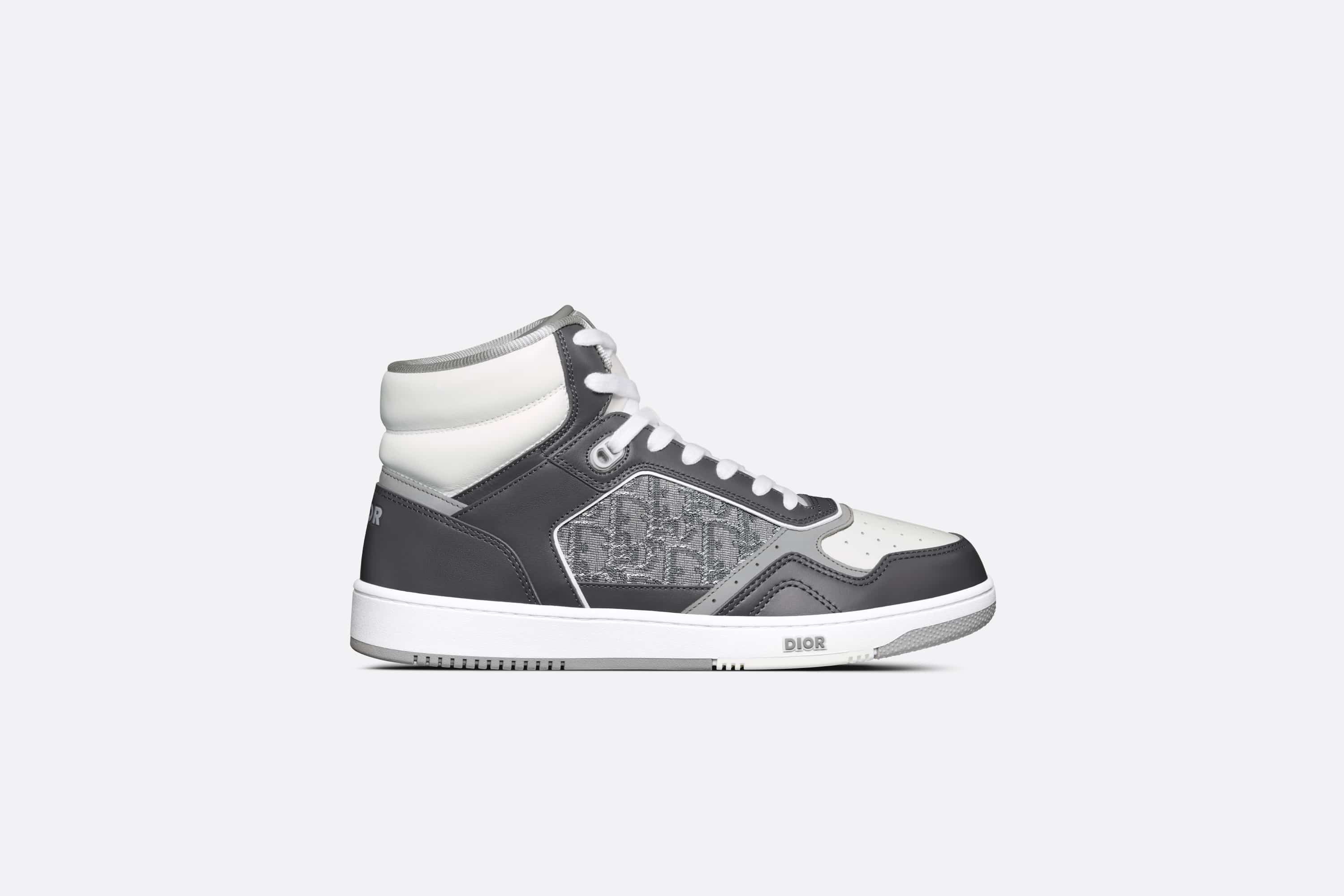 The B27 high-top sneaker is already a House essential. Crafted in anthracite gray and white smooth calfskin, the style is adorned with Dior Oblique jacquard side inserts in shades of ruthenium. The sneaker is enhanced by CD Icon eyelets as well as numerous hallmark details on the two-tone rubber sole, tongue and back. A cushioned high-top completes the design with added comfort and support. The high-top sneaker will enhance any favorite outfit. - Anthracite gray and white smooth calfskin - Ruthenium-colored Dior Oblique jacquard - CD Icon signature tongue - Dior signature on the sole and heel - High-top - Cushioned ankle - Lace-up closure with CD Icon eyelets - Technical mesh lining - Gray and white rubber outsole - Welded, side-sewn construction - Dust bag and extra pair of laces included - Made in Italy Size & Fit - The style fits true to size: we recommend ordering your normal shoe size - For more information, please review the size guide