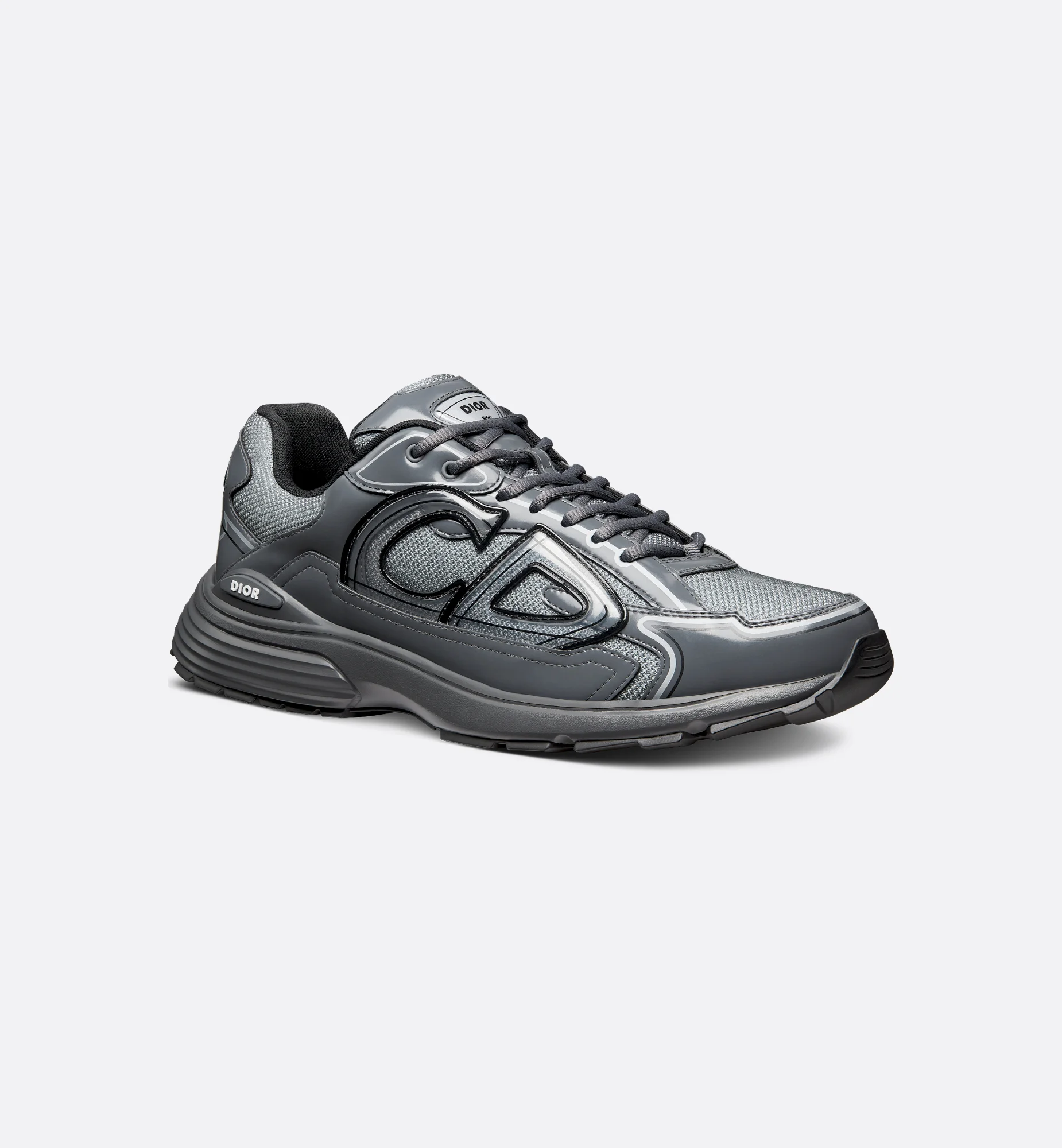 A House staple, the athletic and modern B30 sneaker is offered in a new version combining technical savoir-faire and sophistication. Crafted in light gray technical mesh and gray brilliant-finish technical fabric, it is enhanced by a transparent CD30 signature with a graphic twist. The B30 also features silver-tone Dior B30 and CD30 signatures on the tongue and back. A sculpted ultralightweight rubber sole embellished with various hallmark details and an interior elastic band provide optimal comfort. The B30 sneaker will complete any casual outfit. - Main composition: technical mesh, technical fabric and cotton - Technical mesh and calfskin lining - Transparent CD30 signature on the sides and reflective CD30 signature on the back - Tongue with Dior B30 signature - Low top - Lace-up closure - Gray ultralightweight sculpted rubber outsole with Dior signature and black edging - Two-tone sole with Dior, CD30 and B30 signatures - Welded construction - Dust bag included - Made in Italy Size & Fit - The style fits true to size, we recommend ordering your normal shoe size - Using our personalized tool will provide you with the best size recommendation - For more information, please review the size guide